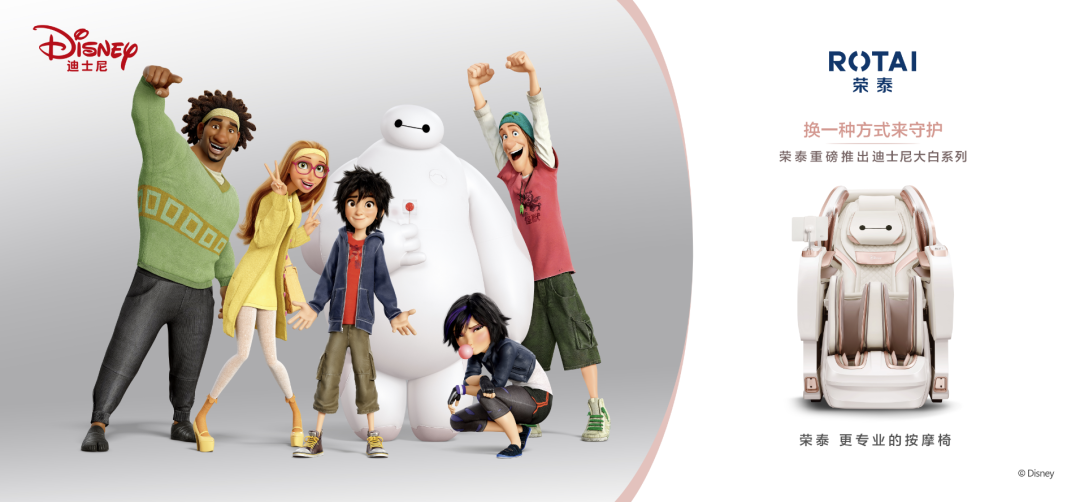 在获得迪士尼和漫威IP授权后,荣泰健康将黑豹、钢铁侠、大白等经典IP融入产品设计,推出一系列联名按摩椅。黑豹款突出科技感,大白款则以呆萌、善良的大白为灵感,打造“暖男人设”,受到了年轻顾客的欢迎。