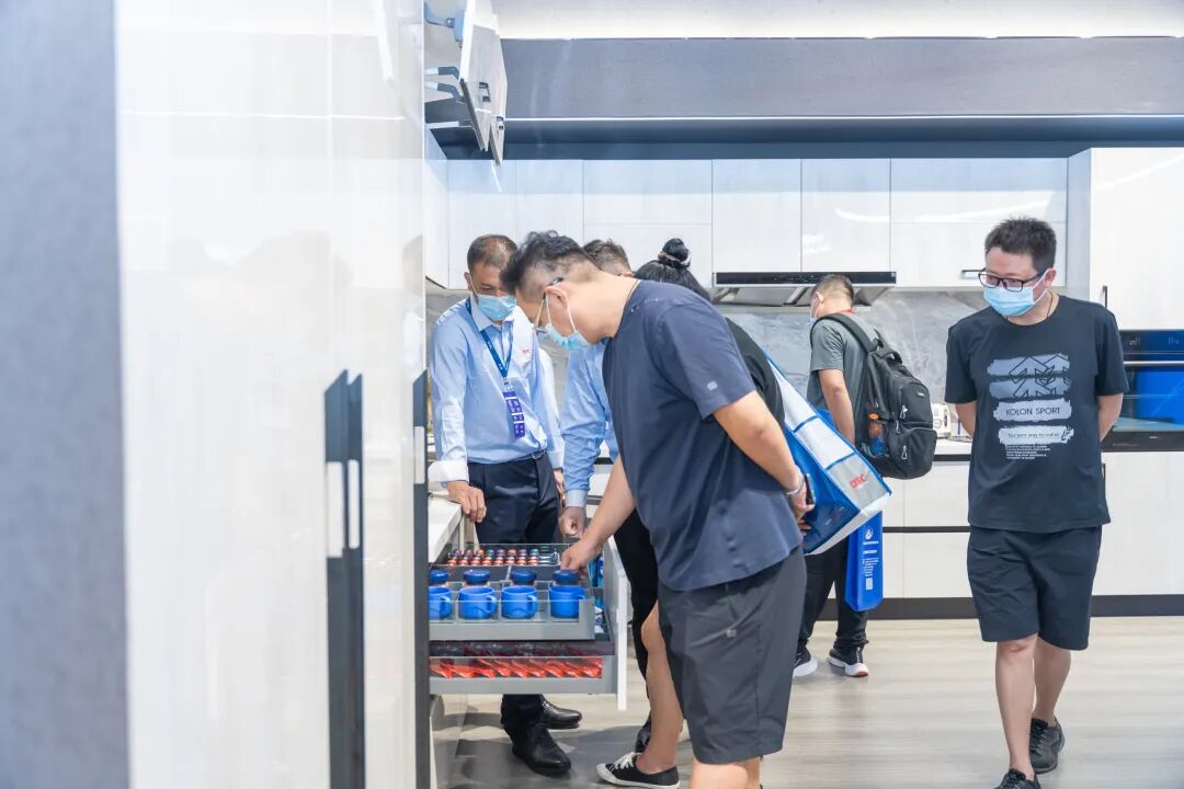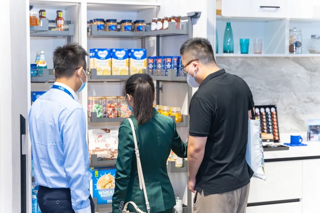 此次展会雅铂丽HQ系列厨房收纳抽屉也备受青睐,在开发设计的时候,兼顾了美观和实用两种要求,开发了超薄玲巧的前面板固定件,用纯粹优雅的 6mm 超薄直身抽帮,钢化玻璃围边设计,以此来彰显家具高级感、时尚感。