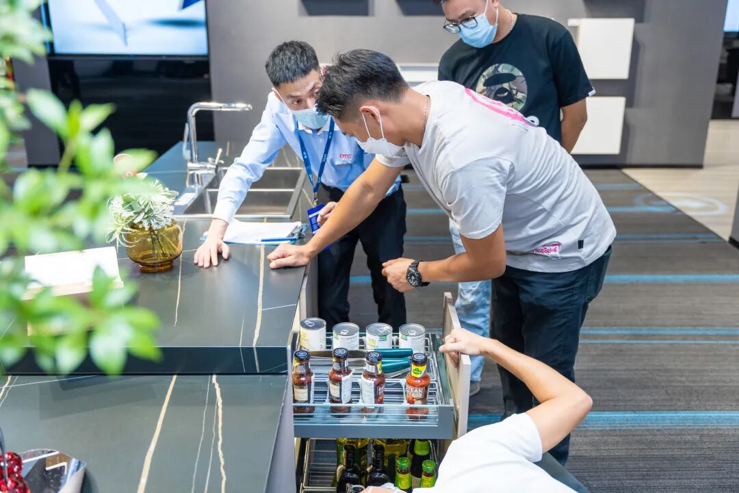 DTC精心筹备的家居五金“智+空间”展示了多款创意新品、家居空间解决方案,特别是具备任意扣快装技术的一扇牵和柔雅牵铰链系列,和雅铂丽厨房收纳抽屉系统等,让客户充分体验到新产品在五大家居空间的巧妙应用,为高端的家居设计提供更多可能。