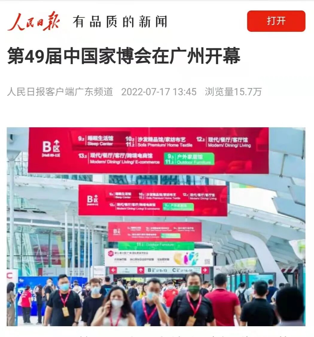 7月29日,由中国家具协会、中国对外贸易中心集团有限公司、红星美凯龙家居集团股份有限公司、广东省家具协会、香港家私装饰厂商总会有限公司共同主办,中国对外贸易广州展览有限公司承办的第49届中国家博会(广州)圆满落下帷幕。本届家博会以“共筑美好家,服务新格局”为主题,设民用家具、饰品家纺、户外家居、办公环境及商用空间、设备配料五大题材,展览面积51万平方米,共有来自23个国家和地区、国内24个省市自治区的2500多家品牌企业参展,展会期间举办8场主题展及超130场会议论坛,到会有商业价值的高质量专业观众139574人,同时首次线上线下同期开展,斩获高达5019万访问量。家博会以辐射全球的超大规模家居展览平台,在畅产业、扩内需、稳外贸、促消费四个方面积极推动行业高质量发展,着力促进国内国际双循环,更好服务人民美好生活需要。
