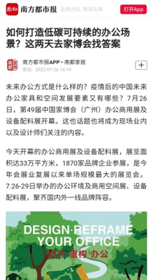 “未来办公方式是什么样的?疫情后的中国未来办公家具和空间发展要素又有哪些?7月26日,第49届中国家博会(广州)办公商用展及设备配料展开幕。这些话题也将成为现场业内以及设计师们关注的内容。”