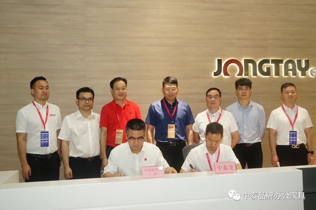 同时,集团董事长陈秋桂先生和中国对外贸易广州展览有限公司总经理刘晓敏先生就2023年举办的新一届中国(广州)国际家具博览会达成战略合作,于中泰展馆举行了签约仪式。