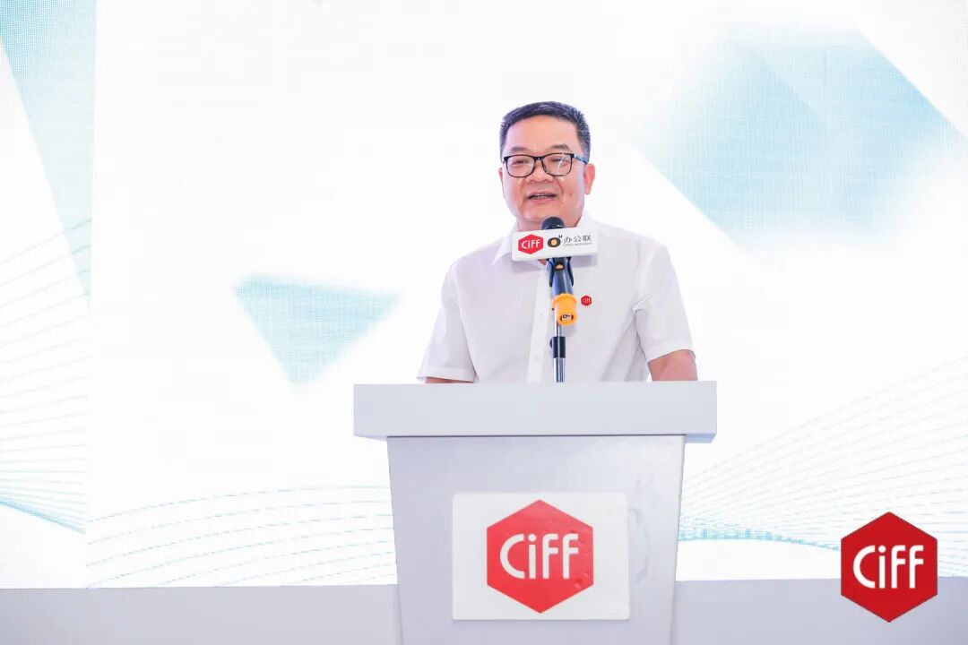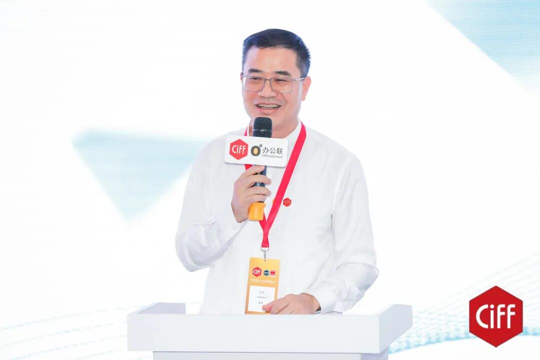 陈旺辉副总经理在致辞中表示,中国家博会办公商用展是行业的标杆展会,中国家博会将继续与许照明老师及广大业界同仁携手并进,共同为大家居行业的高质量发展积极赋能。办公联创始人许照明介绍,本届广州办公环境主题馆的主题为“设计·重构·办公”,旨在探索疫情后的中国未来办公家具和空间发展要素,并强调未来办公的自然生态保护属性和低碳发展属性。