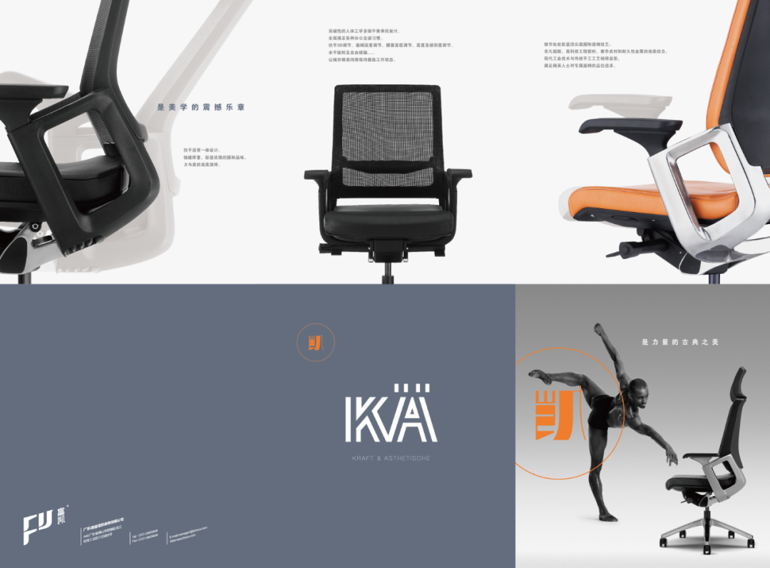 解构主义设计理念,也经常成为我们设计、建构办公椅的原则和方法,典型的代表作是2012年推出的KA系列,该椅大胆地将厚重的金属框架和塑料、皮质等软性材料,通过几何体的拼接和经过反复推敲的线条切割,完美地结合起来,直白而强烈地表达出“力与美”的主题。这个产品推出几年以后得到了市场广泛的高度认可,这说明我们在设计上的考虑还是比较前瞻的。