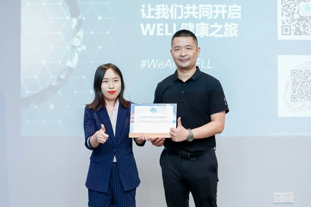 活动中,胜融公司执行董事胡柯与名辉家具(珠海)董事长陈宝川在大家的见证下进行了战略合作伙伴签约仪式。WELL是国际健康建筑空间标准,也是现代健康办公空间设计的依据标准之一。IWBI亚洲区高级经理Zoe代表IWBI向胜融|S+U展厅授予WELL HSR证书,胜融公司开启创新·健康之旅。