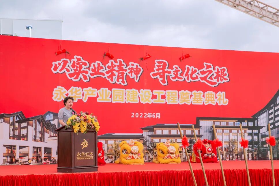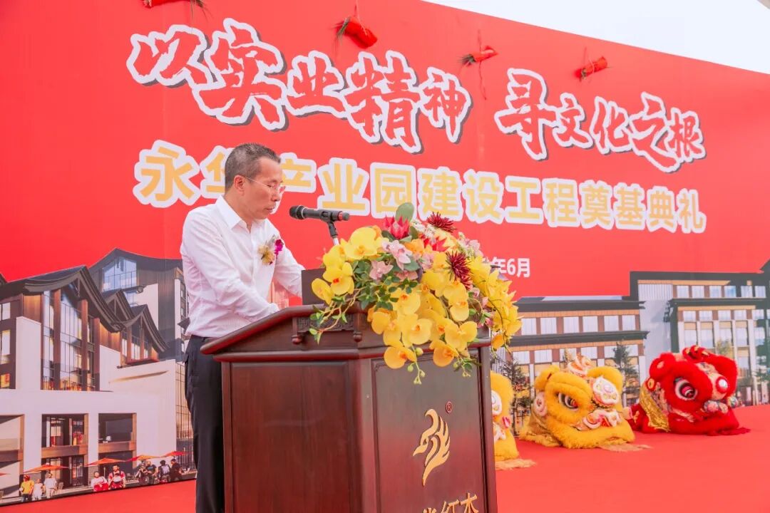 在奠基仪式上,广州市番禺永华家具有限公司董事长陈达强先生致辞。他表示:“永华产业园的建成,一是将持续完善周边配套,显著提升生活的便利性,改善整体环境;二是将传承和发扬传统文化,延续地区红木产业脉络并注入新的活力,提取传统元素演绎岭南文化,创造一个集岭南文化展现及红木文化体验的场所;三是将增加周边就业,可持续提供就业岗位,带动区域的社会发展;四是将带动上下游相关产业发展,包括旅游业、外贸业、精加工业、物流等;五是将为番禺区注入新鲜血液,永华产业园项目的建设可为番禺打造一个新商圈,直接或间接增加税收收入,促进经济社会快准稳发展。永华产业园将以永华家具36年沉淀,用前瞻的视野、综合的实力,致力于打造成番禺区实业新名片。”