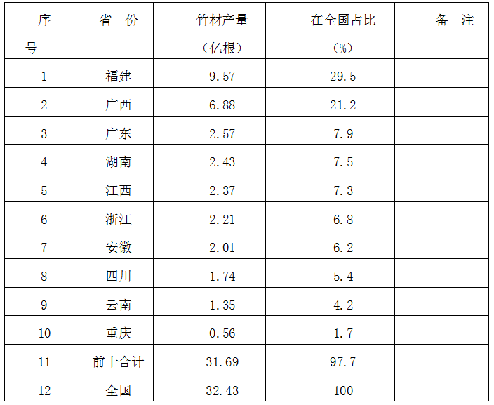 我国竹林资源分布不均,以竹材中经济价值较高的毛竹为例,毛竹适宜成长在温暖湿润的气候条件,因此其分布主要集中在我国的南部地区。据统计,2020年全国竹材产量32.43亿根,前十位的省市占了97.7%。其中,位居第一的福建省9.57亿根,占全国的29.5%;第二位广西壮族自治区6.88亿根,占全国的21.2%;第三位广东省2.57亿根,占全国的7.9%。其实,跟湖南、江西、浙江省产量差不多。广东省地处我国大陆的南部,属南亚热带和热带季风气候类型,是全国光、热、水资源最丰富的地区,气候条件十分有利于竹林的生长。我省竹子种类主要有毛竹、粉单竹、青皮竹、茶杆竹等材用竹,还有麻竹、云南甜竹、雷竹等笋用竹,肇庆地区主要种植茶杆竹和青皮竹,毛竹主要分布在韶关、梅州、清远、河源等地。
