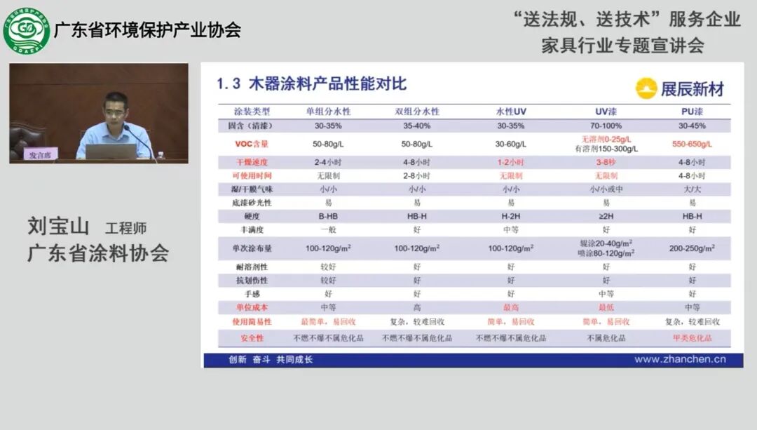 省涂料协会工程师刘宝山对家具行业环保涂料的应用现状及案例进行分析。