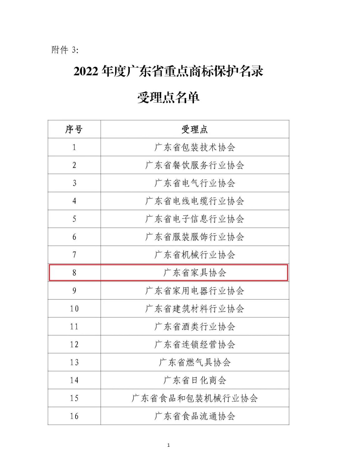 1、广东省家具协会已列入2022年度广东省重点商标保护名录受理点。