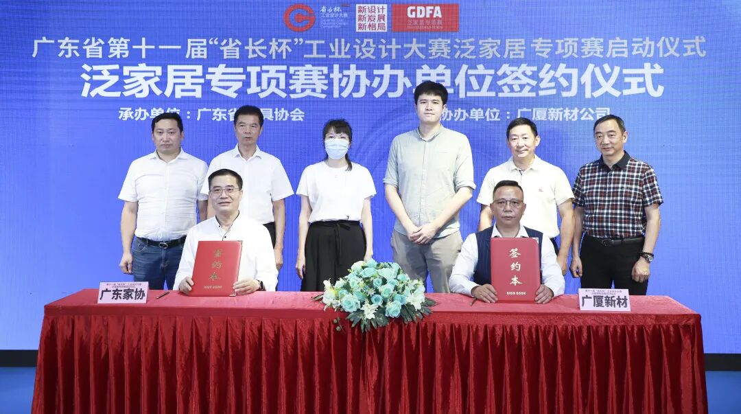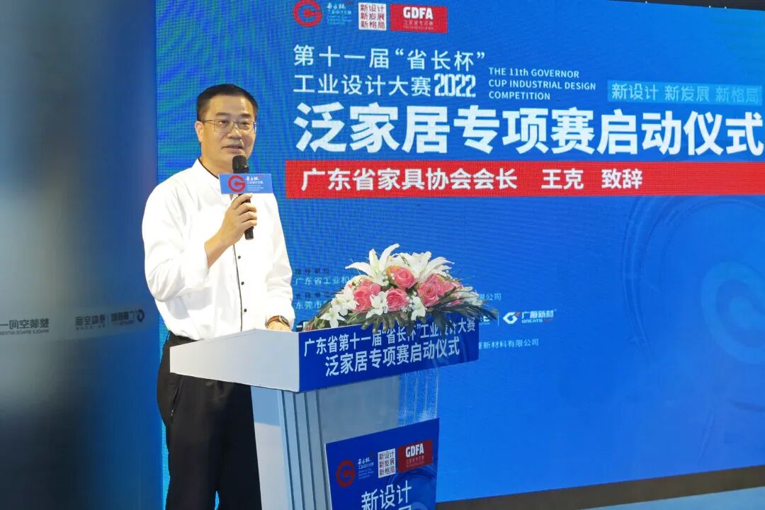 “新设计、新发展、新格局”,5月31日,广东省第十一届“省长杯”工业设计大赛泛家居专项赛启动仪式在东莞举行。省人大社会建设委委员、“省长杯”泛家居专项赛办公室主任、广东省家具协会会长王克,“省长杯”工业设计大赛承办单位、广东工业大学秘书处万千博士,东莞市工信局四级调研员黎玲东,东莞市厚街镇人民政府领导方活力,“省长杯”泛家居专项赛办公室副主任、省家具协会执行会长兼秘书长张承志,东莞名家具俱乐部理事长林炳辉,广东现代会展管理有限公司副总经理方润忠,“省长杯”泛家居专项赛协办单位、广厦新材公司董事长李茂泉共同启动本届泛家居专项赛。