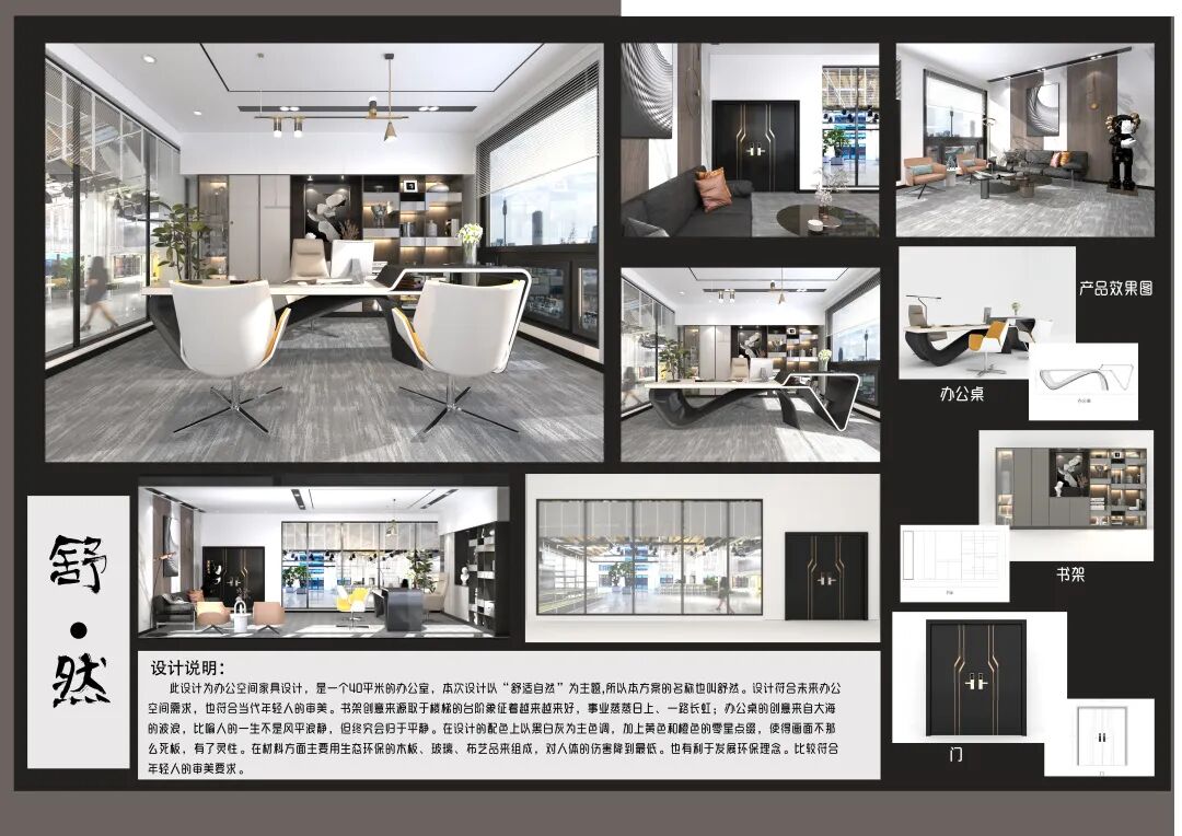 本次大赛以“设计引领未来,创意改变生活”为宗旨,以“多一份人性,多一份写意”为理念,设计内容为“高管私密办公空间——40平方米家具设计”。自大赛征集以来,得到了来自设计高校、专业设计机构,及年轻设计师的热情关注和积极参与。