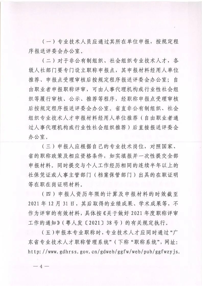 3、申报人资历年限的计算及申报材料的时效截至2021年12月31日,其后取得的业绩成果、学术成果等,不作为评审的有效材料。