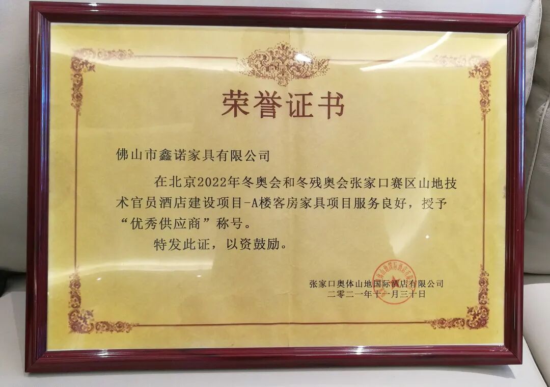 鑫诺家具被授予北京冬奥会项目“优秀供应商”称号