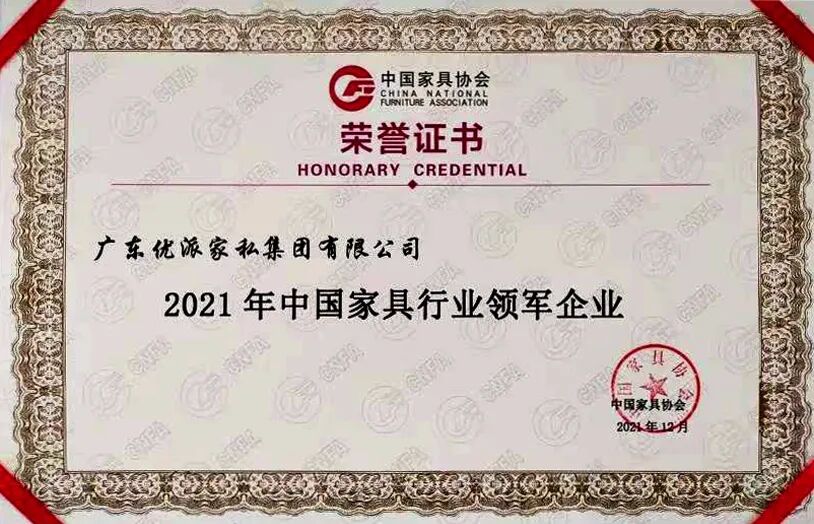 优派集团本着匠心精神,成功经营37年,屡获佳绩。2021年12月29日,在中国家具协会第七届二次理事会上,优派集团再次荣获“2021年中国家具行业领军企业”称号。