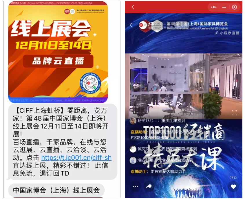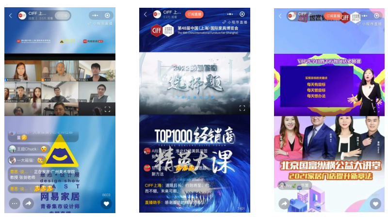 通过前期深入分析线上观众来源及构成,深化与房地产商、经销商、设计师等上下游资源的合作,甄选目标观众群体,进一步完善“展店联动”模式。累计向近年与会的超80万观众发送300万条短信,开展高频率数据营销,组织红星美凯龙等卖场渠道经销商,准时上线收看品牌直播。线上展会打破时间与空间的限制,随心看、随时看,观看量超1万人次的直播累计13场,首日云开幕式线上观看人次更是突破10万大关。