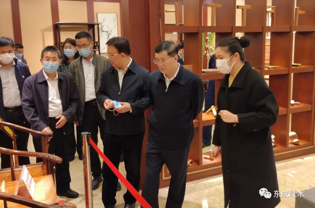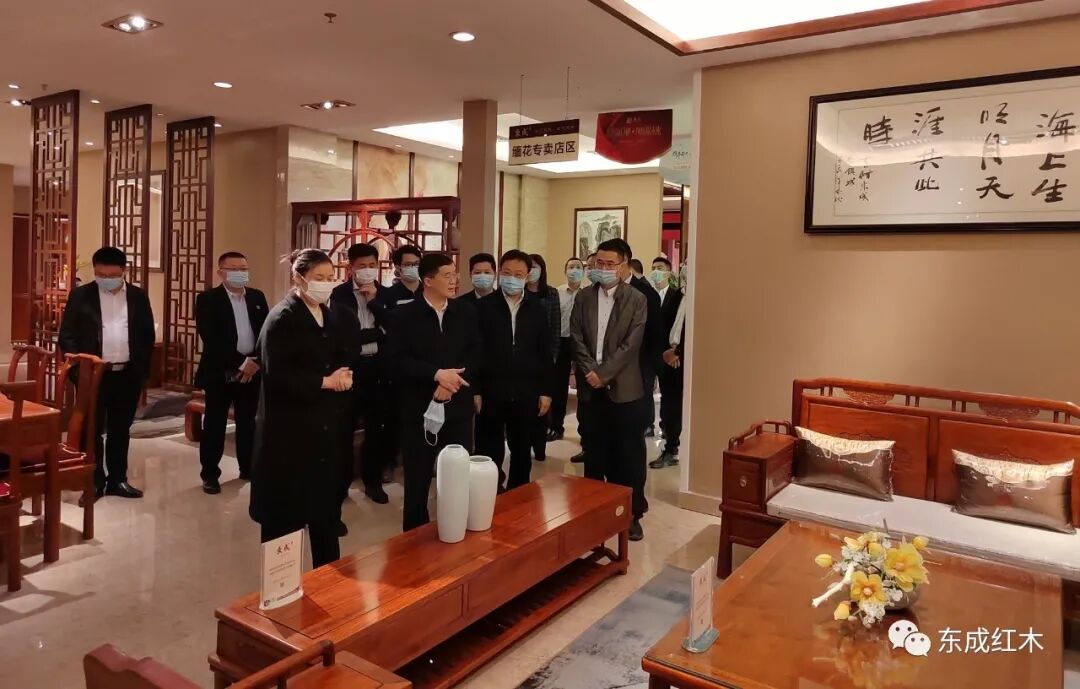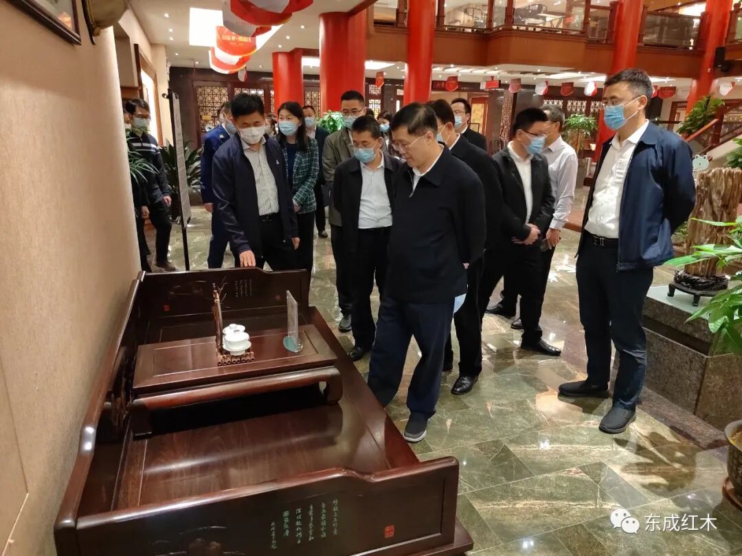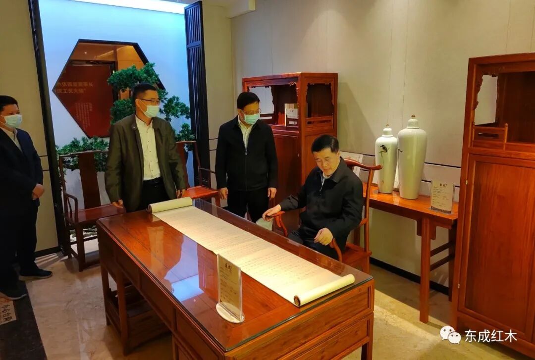 通过与红木家具的近距离接触,调研组一行深刻感受到东成红木家具精品的独特魅力以及东成红木执着追求的精益求精的工匠精神。领导们对东成红木家具精湛的工艺和紧跟当代审美及实用性需求的设计理念给予了高度肯定。同时鼓励东成红木要坚定发展信心,不断创新思路,在开展产品绿色制造、用文化引领产业发展等方面积极作为,继续发挥好红木家具龙头企业的引领和示范作用,为广东省经济繁荣发展持续贡献东成力量。