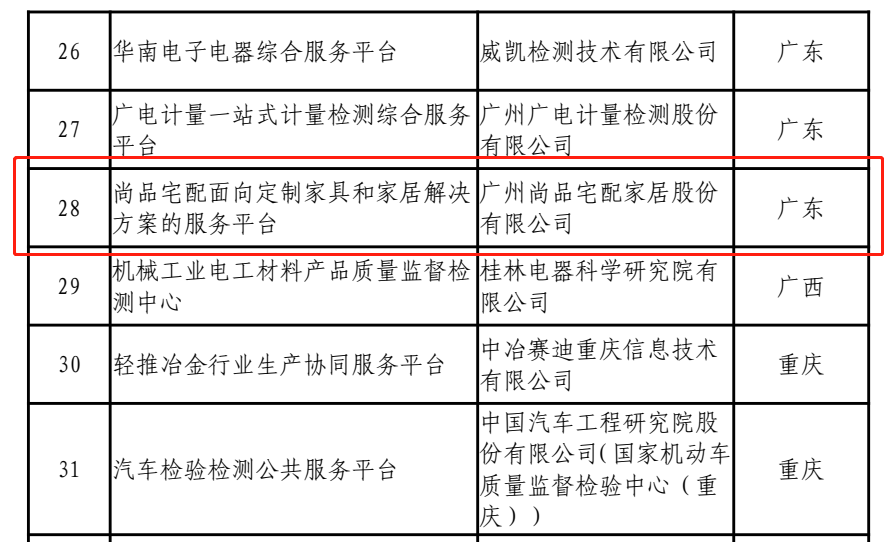 11月16日,国家工业和信息化部正式公布了第三批服务型制造示范名单,广东省家具协会执行会长单位、尚品宅配以“面向定制家具和家居解决方案的服务平台”成功入选“第三批服务型制造示范平台”(共48个)。这也是定制家居行业首家入选的示范平台。