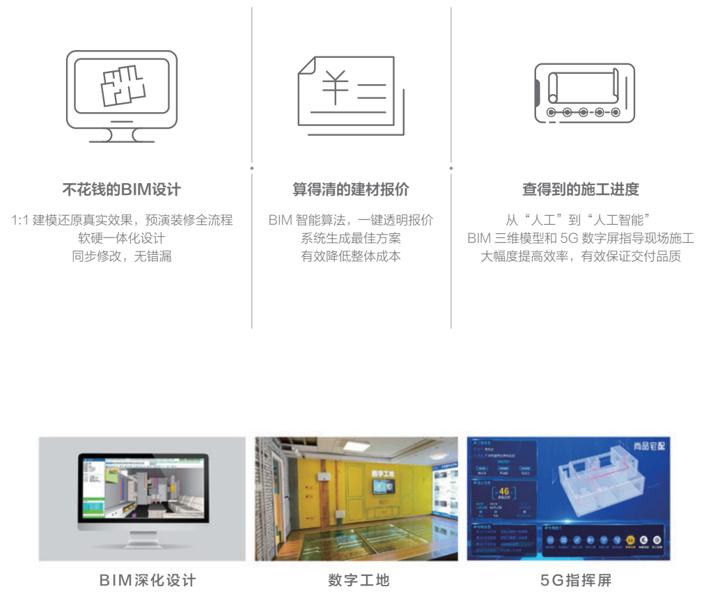在消费者业务领域,尚品宅配推出BIM整装技术,把每一个客户的家庭空间数字化,通过 “所见即所得”的设计,实现家居全品类的一站式配齐。运用BIM技术,提前预演装修全流程,规避风险提升效率,精准统计用量,减少材料浪费。通过中央塔台式计划调度系统与5G数字工地,让大规模、多环节的施工有序进行,从而有效保障交付时间与交付品质。