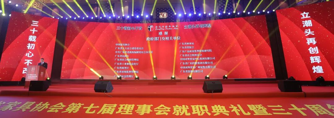 9月13日,以“三十载初心不改,立潮头再创辉煌”为主题的广东省家具协会成立三十周年庆典在广州举行。广东家协三十年来的发展,离不开关心和支持协会工作的社会各界。庆典上,广东家协执行会长兼秘书长张承志代表协会向政府部门及相关单位、第六届理事会期间的合作伙伴、与协会携手15年以上的会员单位,以及历任会长、协会秘书处全体员工致以诚挚的感谢。