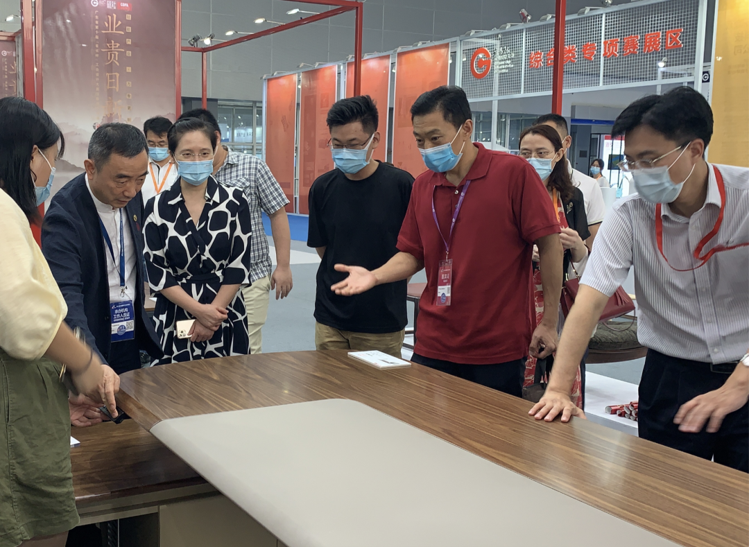 广东省工业和信息化厅厅长涂高坤,副厅长陈磊、吴红先后于18日上午、下午莅临现场巡展和指导工作。广东省家具协会执行会长兼秘书长张承志热情接待。