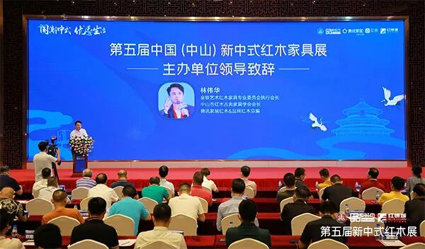全联艺术红木家具专业委员会执行会长、中山市红木古典家具学会会长、腾讯家居红木&品牌红木总编林伟华致辞时表示,新中式红木展是中山新中式红木产业发展的一个侧面反映,代表着产业的兴起及波澜。通过本届展会的举行,为红木产业打一剂强心针,让红木人重拾信心。未来市场必将属于有理想、有方法、有工具、有行动的“四有奋斗者”。