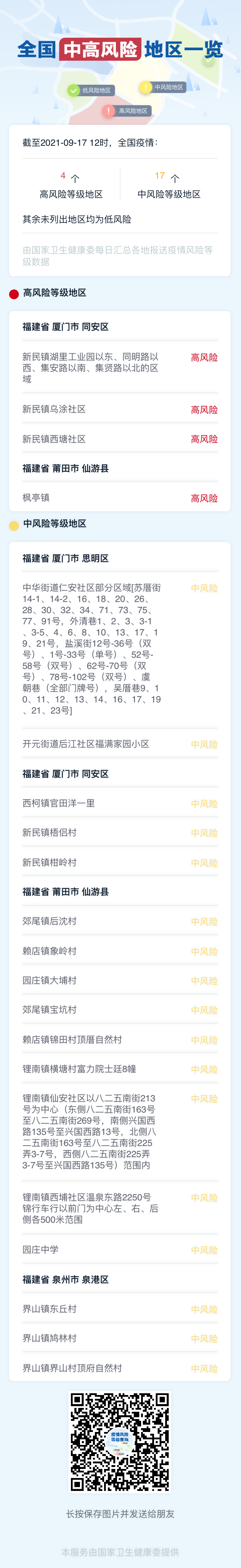 ● 全国高中风险地区名单 ●