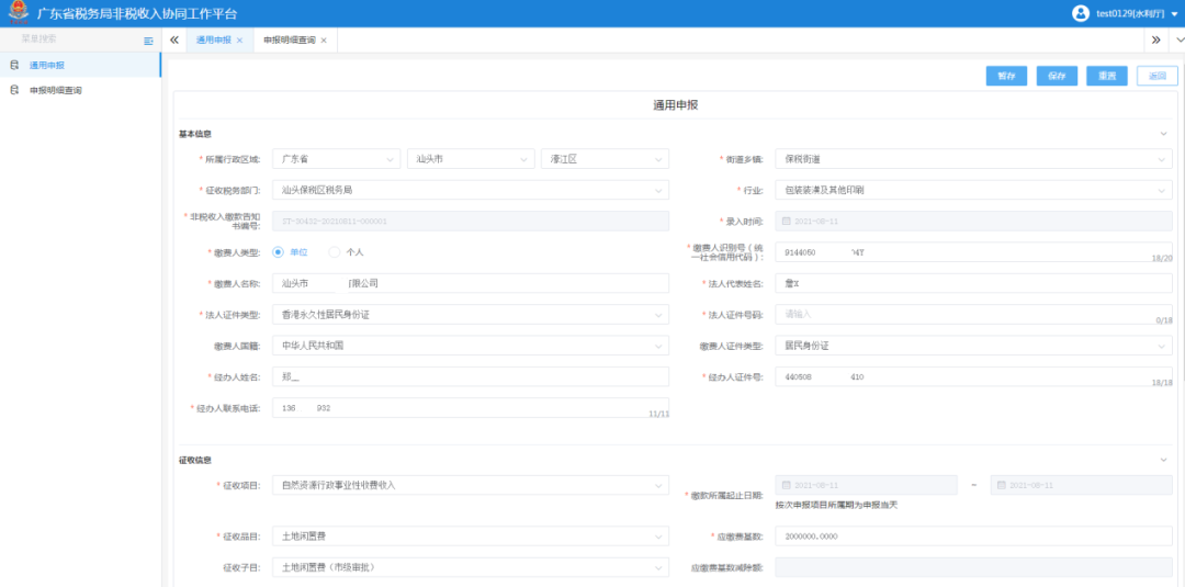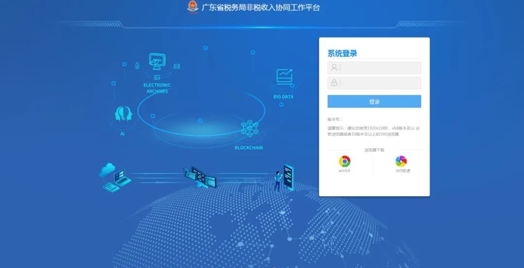1.自然资源部门登录广东省税务局非税收入协同工作平台,进行缴费数据采集。