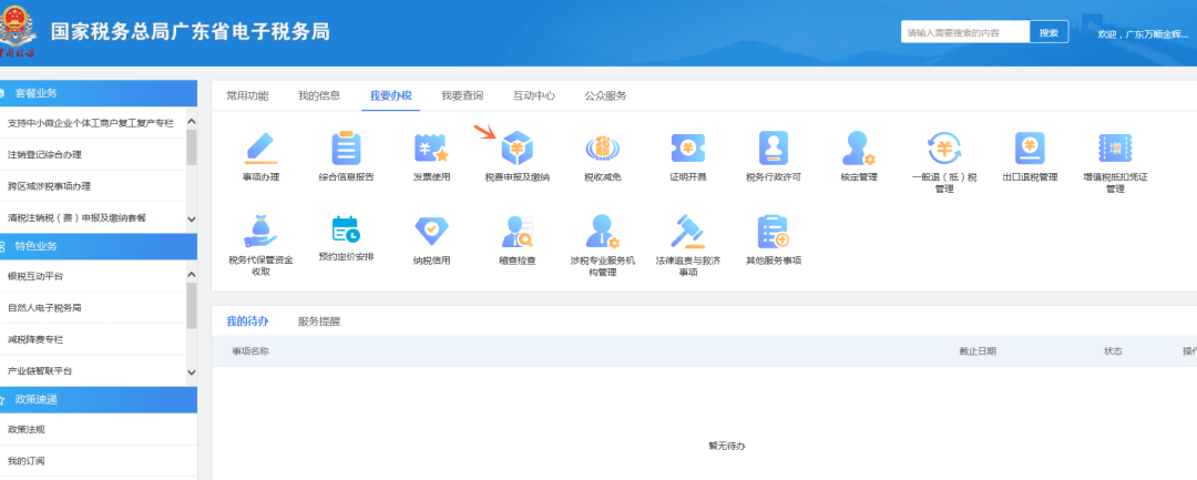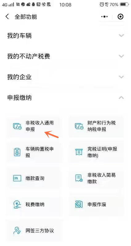 手机微信扫描粤税通二维码,点击【登录】,选择【个人业务】→【申报缴纳】→【非税收入通用申报】。