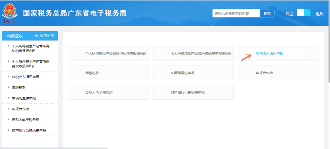 1.个人身份登录电子税务局,选择【我要办税】→【申报征收】→【非税收入通用申报表】,点击填写申报表。