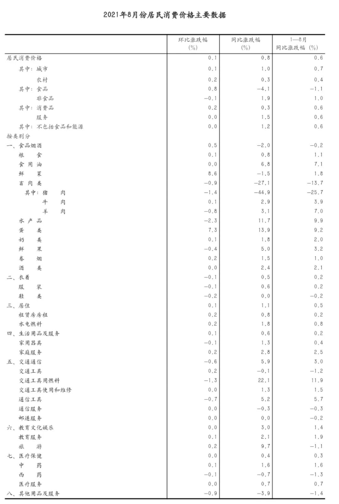/ 【经济资讯】2021年8月份居民消费价格同比上涨0.8% 环比上涨0.1%