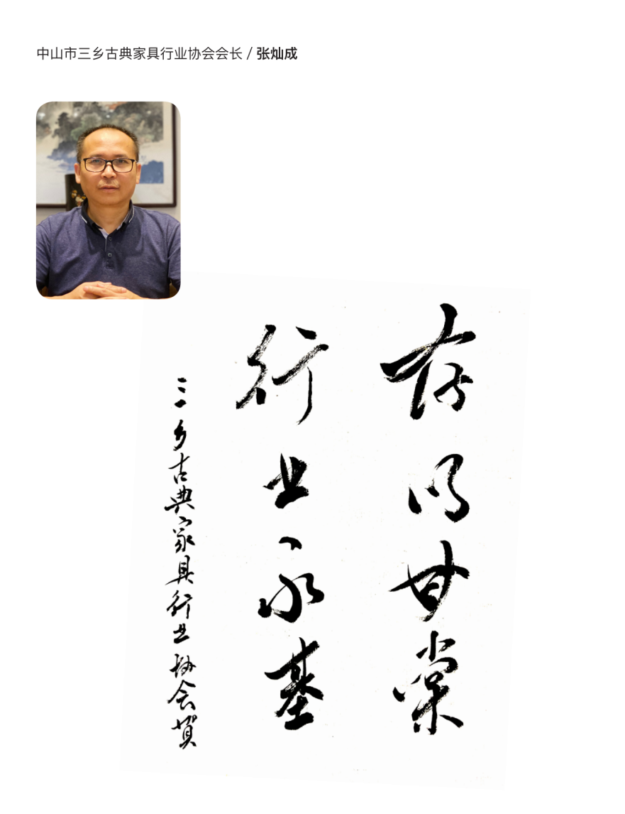 2021年,在广东省家具协会成立三十周之际,中山市三乡古典家具行业协会会长张灿成、佛山市家具行业协会会长周振扬、佛山市顺德区家具协会会长左建华、乐从家具城商会会长陈桂芳纷纷发来贺词表示祝贺。