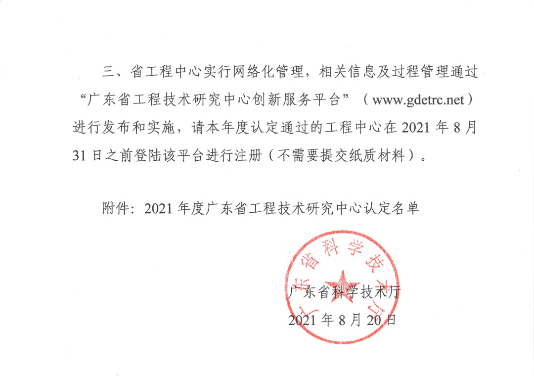 广东省工程技术研究中心是构建以企业为主体、市场为导向、产学研用深度融合的技术创新体系的重要科研平台,在产业创新发展中发挥科技支撑和引领示范作用。
