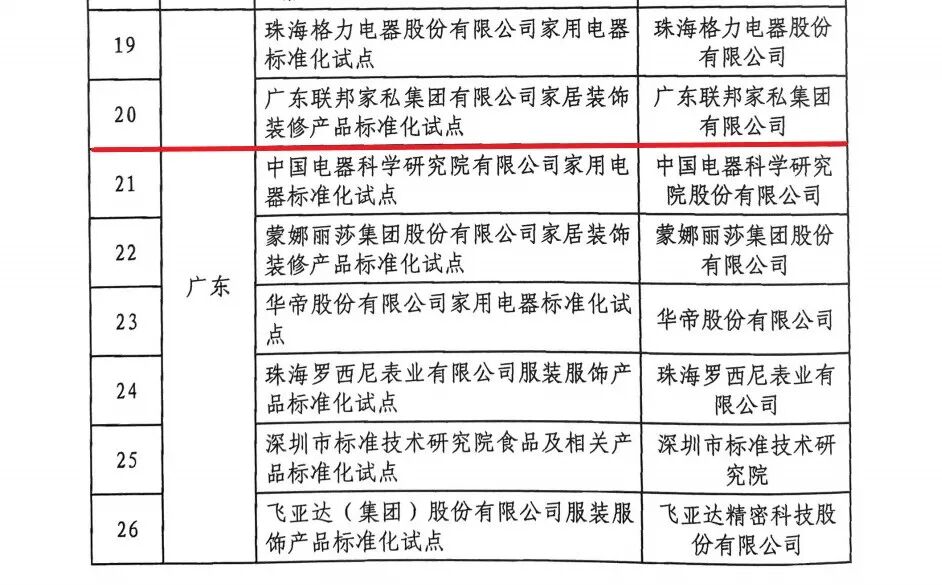 2018年8月,国标委下达了“第一批国家级消费品标准化试点项目”,联邦家私成功入选,并承担“家居装饰装修产品标准化试点”工作。首批试点项目集中在家居装饰装修产品、家用电器和消费类电子产品,在消费品市场具有广泛而重要的行业代表性。