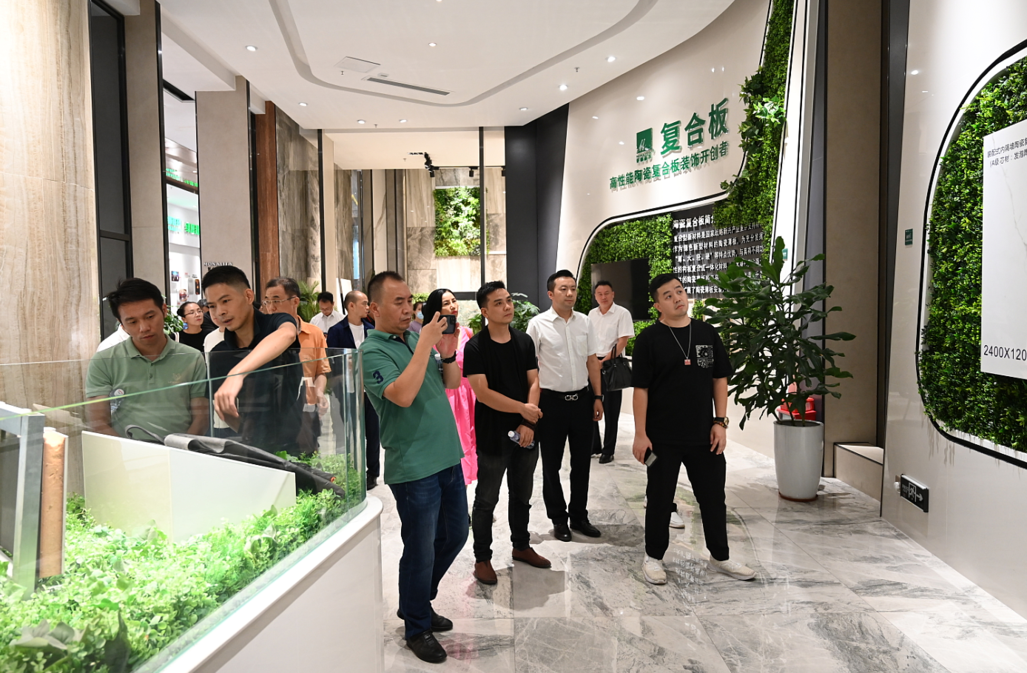 7月12日,为了帮助家具行业挖掘更多发展岩板家具的跨界合作机遇,广东省家具协会执行会长兼秘书长张承志等30多位大湾区家具、橱柜、定制、设计等有关行业协会的会长、秘书长一同走进蒙娜丽莎-绿屋建科展厅,实地了解岩板的生产和应用情况,并进行座谈交流。