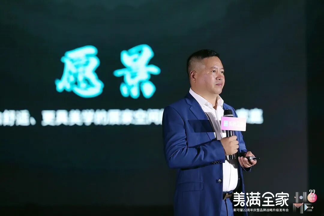 斯可馨董事长胡卫东正式宣布:基于多个维度的考虑,斯可馨正式开启「一站配齐 美满全家」全屋优选新篇章。