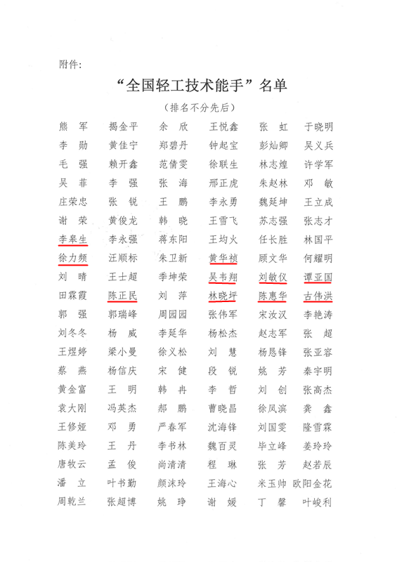 希望获得“全国轻工技术能手”荣誉称号的同志再接再厉,发挥榜样引领作用,努力学习新知识,掌握新技能,创造新业绩。同时也希望广大的从业人员向他们学习,为提高轻工行业技能发展水平,推动技能人才队伍建设,促进行业高质量发展,做出更多更大的贡献!