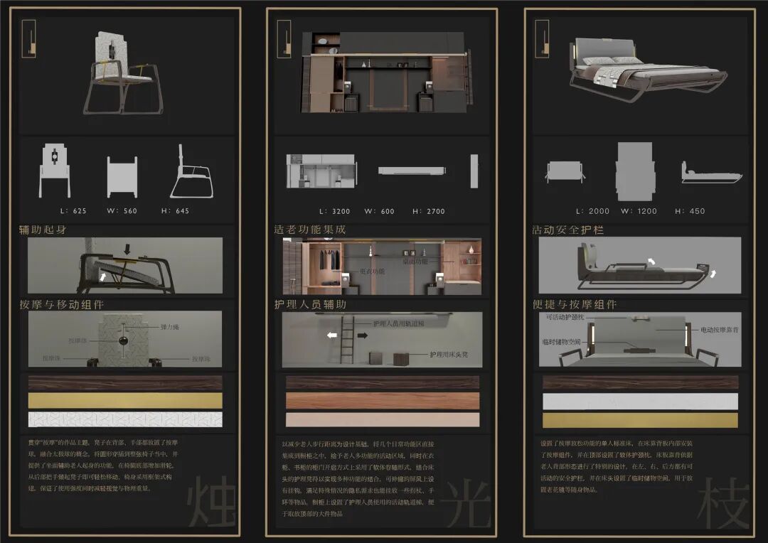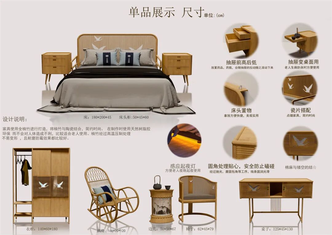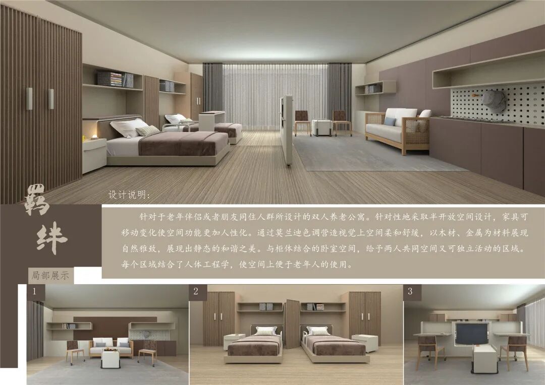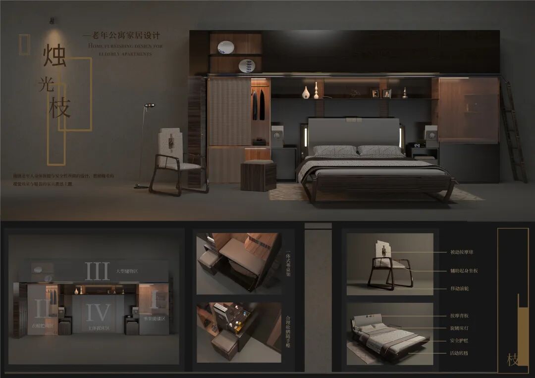 本届大赛以“多一份人性,多一份写意”为宗旨,以“养老公寓—卧房板木家具设计”为主题,自征集以来,得到了来自设计高校、专业设计机构及年轻设计师的热情关注和积极参与。