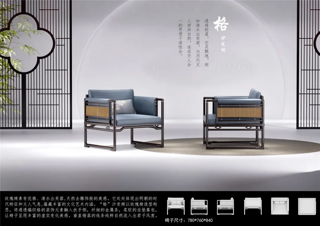 该作品在传承明式玫瑰椅的基础上进行设计,适度结合了现代沙发的功能,造型比例舒适、轻盈灵动,材料选择和结构设计合理,是一件既有有文人气息和艺术内涵,又具有落地性的优秀作品。