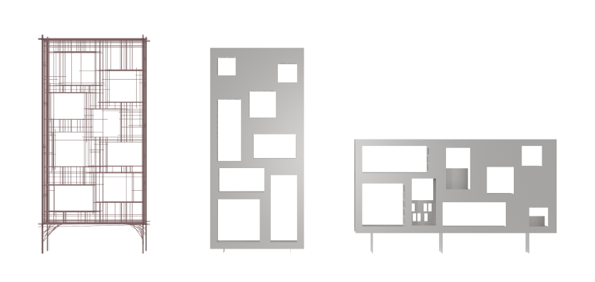 设计师以工地脚手架为灵感,让线在算法控制下生成一个预留置物空间的架子。如果说“线”的构成是在混乱中构建秩序的话,那“面”就是我们想要的建筑感、冷峻感的产品美学。面在算法控制下有序镂空,自由开放的块面形成了建筑般的视觉感。对柜子而言,“看不见的地方比看得见的地方更脏”,因此完全开放的空间便于清洁。