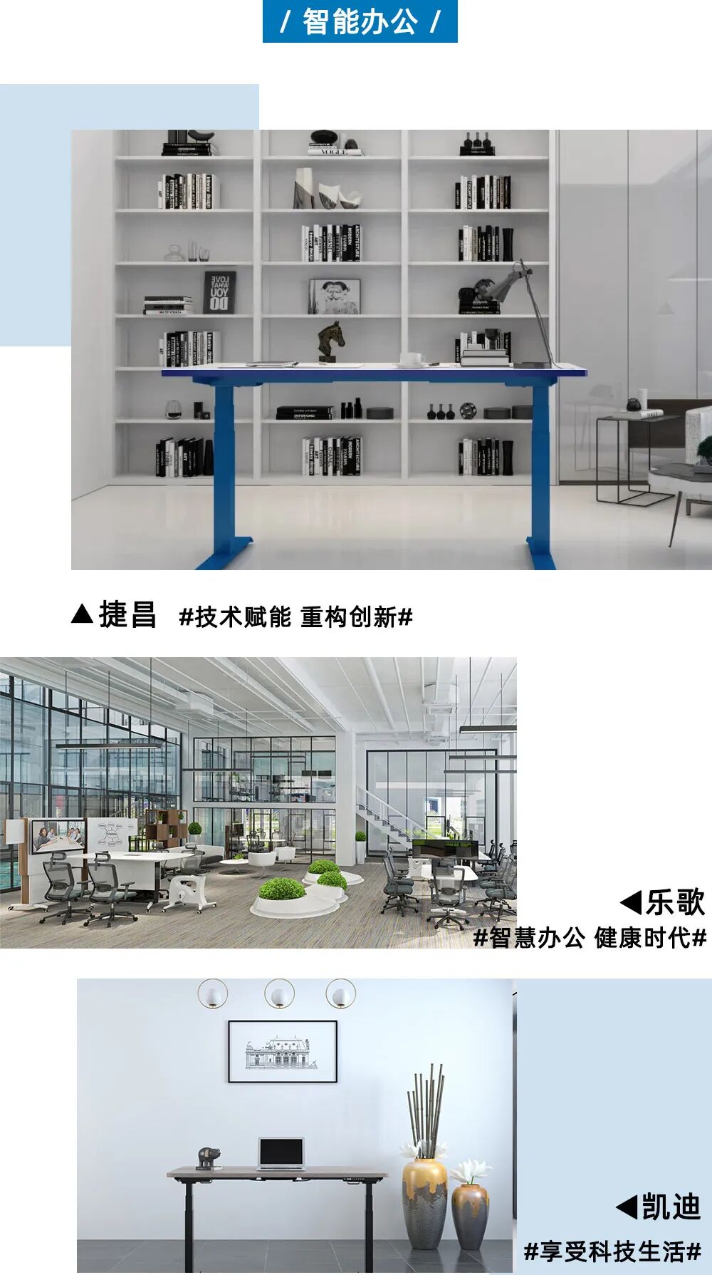届时,捷昌、乐歌、凯迪、LINAK、海蒂诗、OMT&Veyhl、OKIN、澳柯、WALTZ等智能办公品牌将携新产品新技术集体亮相,打造科技感MAX的智能系统空间、智能配件展区;鸿盛、育才、聚宝、恒丰、海基伦、诗敏、建晟、富美、育佳、恒弘、友谊、民意、宏宇等品牌将齐聚1.2馆,集中展示学校家具新成果、新趋势;仪美、博生、万开、华燊、维格等品牌将聚首5.1号馆,探索医疗养老家居空间的多重可能性。