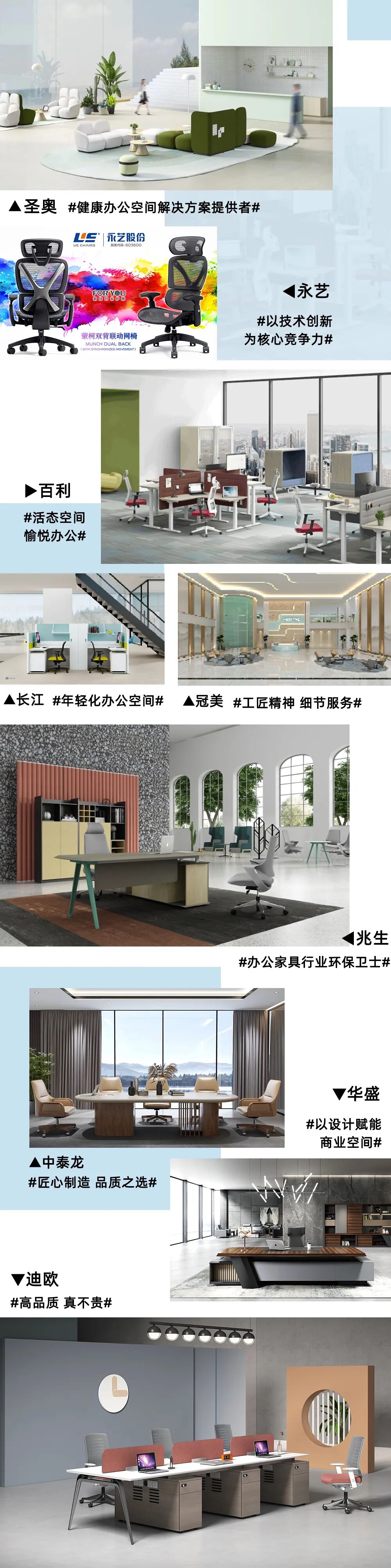 作为全球领先、亚洲最强的办公环境展,本届展会参展品类丰富,涵盖系统办公空间、办公坐具、公共商用空间、办公配件、医疗养老家具、智能办公、设计潮流等。大牌云集,品牌阵容超豪华,聚齐圣奥、百利、长江、永艺、恒林、捷昌、乐歌、凯迪、海蒂诗、力纳克、冠美、兆生、中泰龙、熊一、华盛、迪欧、科尔卡诺、黎明、京泰、鸿业、美格利生、新达、科劲、开林、优派、冠臣、东港、鑫诺、健威、博森、博一、思尚、富凯、优坐、丽江、鸿盛、鸿基、澳舒健、华堡、远大、金虎、德昌、佛山高飞模、瑞信、中泰等众多一线头部品牌,共同为全行业呈现最前沿的办公空间解决方案与最新潮的办公空间设计趋势,成就一场前所未有的行业盛会,是办公家具行业名副其实的「专项王者」。