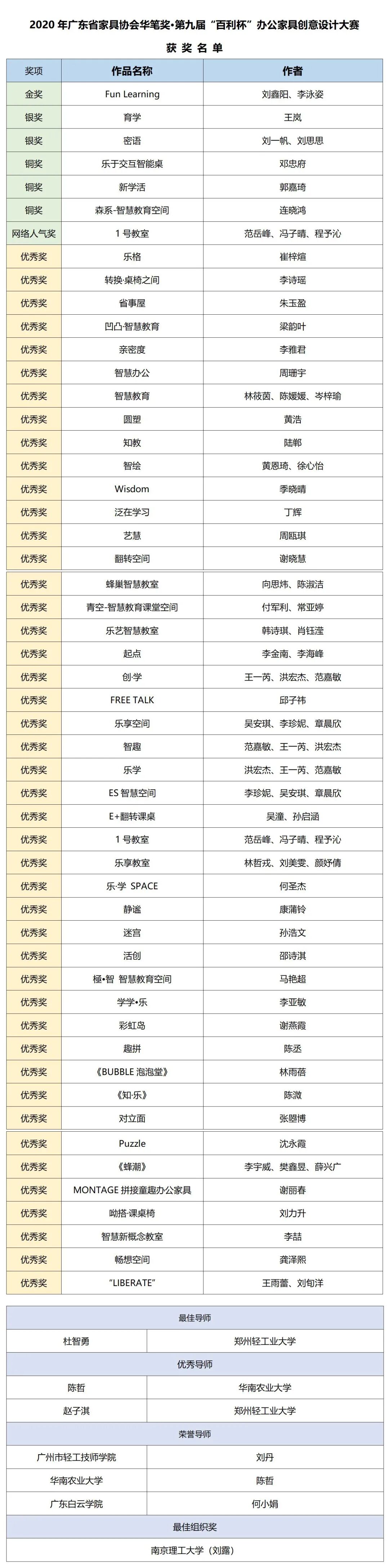 【设计大赛】获奖名单 | 华笔奖•第九届“百利杯”办公家具创意设计大赛揭晓