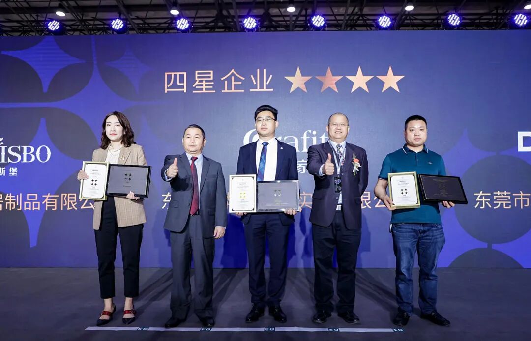 在授牌仪式上,东莞市工信局党组副书记、中小企业局局长姚铸锐,东莞市厚街镇人大主席方活力为获得五星评价的兆生家具、慕思、洋臣家具授牌。东莞市厚街镇委委员杜学民、东莞市质量监督检测中心主任谷历文为获得四星评价的华辉家具、万恒通家居、卧皇寝具授牌。