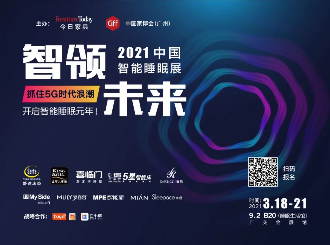 3月18-21日开幕的“智领未来·中国智能睡眠展”将在B区9.2号馆B20举办,届时现场将第一次集中展现中国智能睡眠产业的发展。舒达、金可儿、MySide、芝华仕、喜临门、慕思、梦百合、MPE、Sleepace、绵眠、涂鸦、住小帮等优秀头部企业等优秀头部品牌企业悉数登场,见证中国智能睡眠产业的标志性元年!