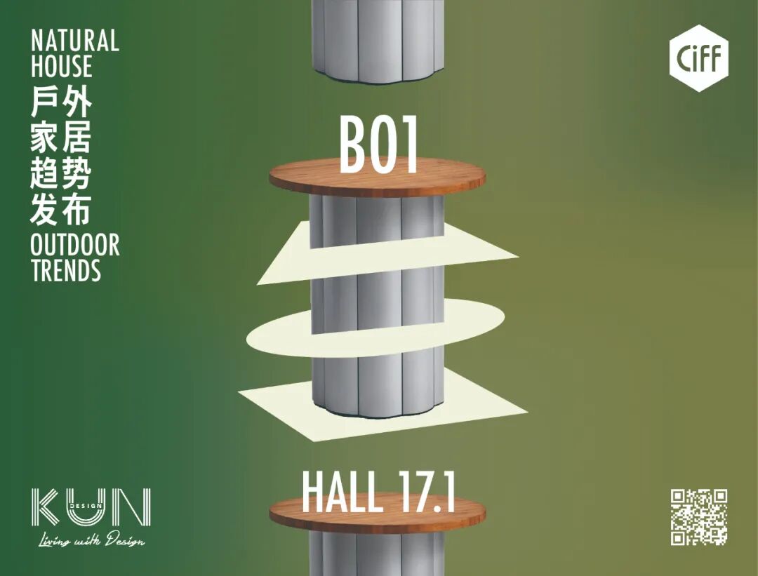 此外,户外家具设计品牌KUNDESIGN将在17.1号馆B01打造生活化潮牌、酒店、庭院、户外餐厅、家装阳台这五个代表性的区域,向所有来的观众展示目前户外行业的各种可能性,以及多样性的未来。