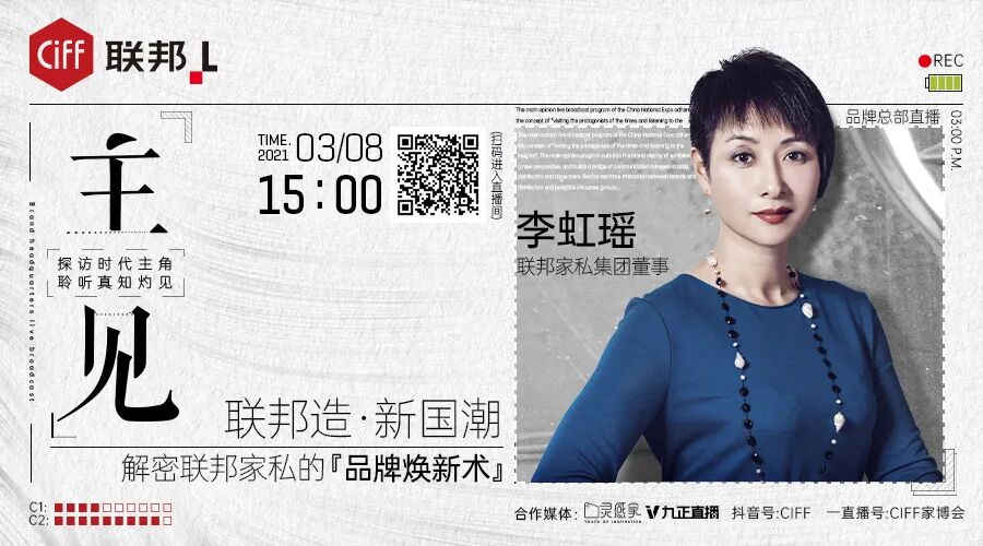 随着中国综合国力的崛起,年轻一代拥有强烈的民族认同、民族自豪和文化自信,随即在包括家居在的全行业掀起了一轮“新国潮”。联邦早已摆脱以往的品牌形象,发布“四新”发展战略,聚焦新品牌、新产品、新模式、新服务的迭代更新,全面打造“青春联邦”,并在日新月异的新消费需求中,扛起了家居新国潮的大旗。去年疫情之下,有品牌缩减成本,变中求稳,也有品牌选择创新突围,逆势破局。广东省家具协会执行会长单位、联邦家私集团,今年推出“一站到家”的联邦|生活提案馆全新商业模式;与著名时装品牌盖娅传说跨界合作打造联名款,推动家居时装化、艺术生活化,联邦家私将品牌形象、产品内容、服务形态、商业逻辑都进行了大刀阔斧的迭代更新。作为整体家居生活空间解决方案的提供商和服务商,37年来,联邦家私力求在每个时代,洞悉消费者的需求,为他们提供一站式整体家居生活空间解决方案;力求紧跟时代节拍,重新定义新时代的家居新国潮。在这个急剧变化的时代,联邦家私是如何保持品牌活力与创新力?2021年又将如何玩转“新国潮”?3月8日下午3点,CIFF中国家博会主见直播将走进联邦家私集团总部的联邦|生活提案馆,并邀请联邦家私集团董事李虹瑶做客直播间,解锁联邦家私的全新商业模式,揭秘她的“品牌焕新术”!