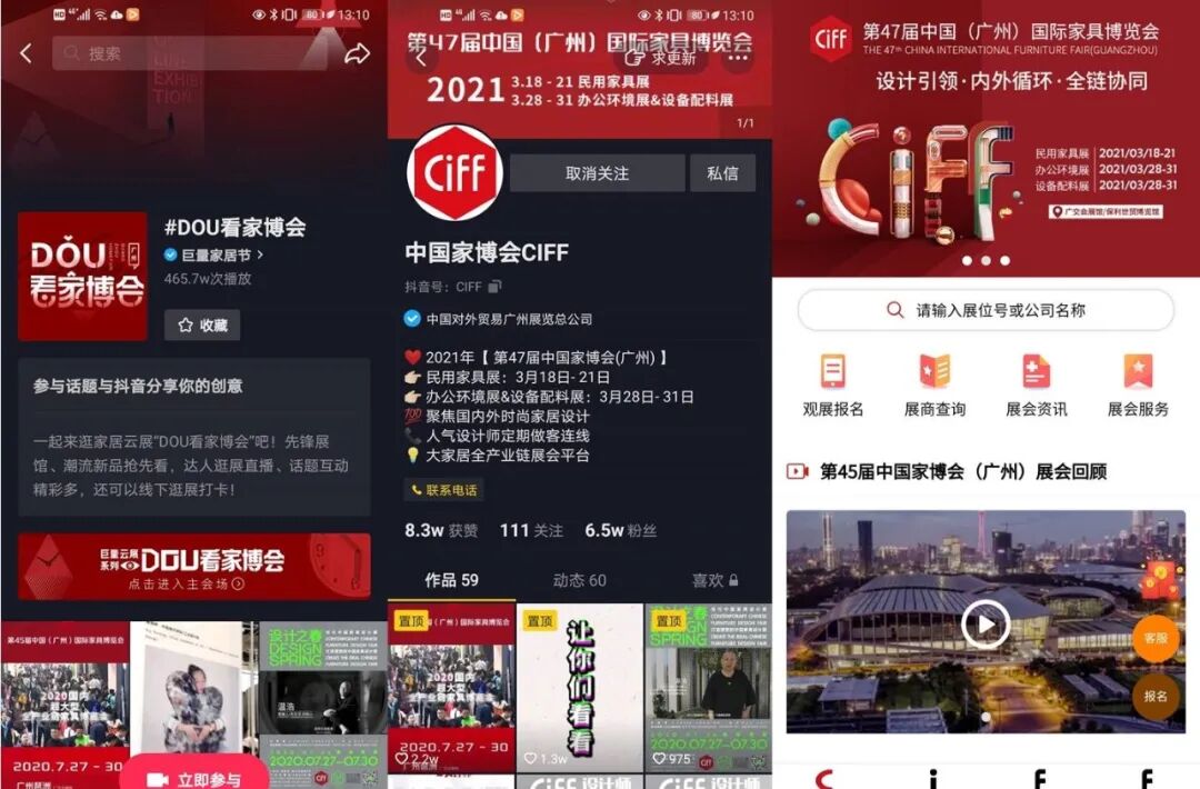 为满足展商、观众不断升级的参展、观展需求,2021年中国家博会(广州)积极优化展会服务,为展商和观众带来实实在在的参展、观展幸福感、获得感。依托抖音、小程序、一直播、官网等平台,持续深化数字化渠道招商,充分利用抖音、小程序等自媒体流量平台,打造高流量、强互动的泛家居朋友圈,为企业提供云展厅、线上直播等多元线上展示方式,联动线下展会为虎添翼。