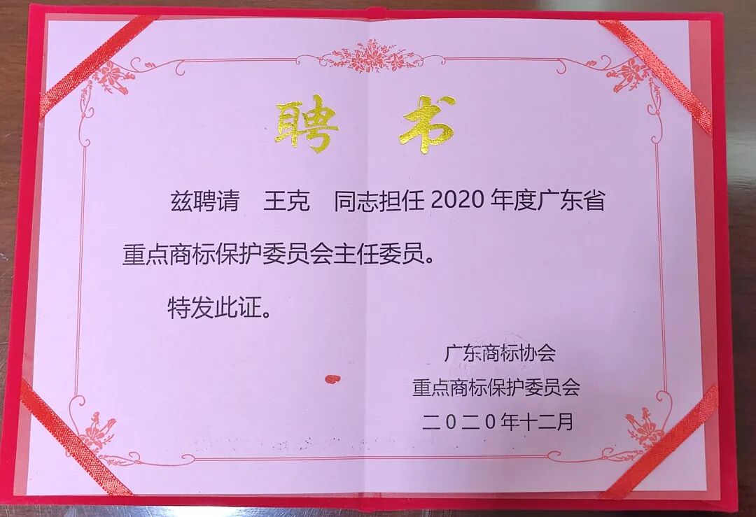 2021年1月19日,广东商标协会组织召开了2020年度广东省重点商标保护名录商保委委员会议,讨论审议2020年度广东省重点商标保护名录的相关工作,会议由商标协会会长黄启宁主持。省十三届人大代表、广东省家具协会会长王克出席会议,并被聘请为商保委主任委员。