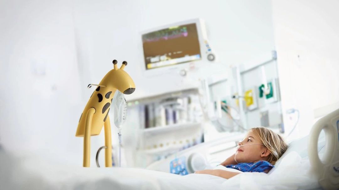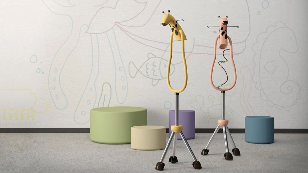 这是一款专为儿童设计的输液架,呆萌可爱的外观,可以减少孩子们因为打针带来的恐惧感,同时,顶部有一个摄像头,可以随时监控孩子们在输液时的身体状况。