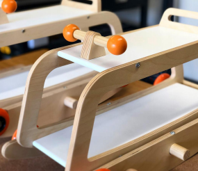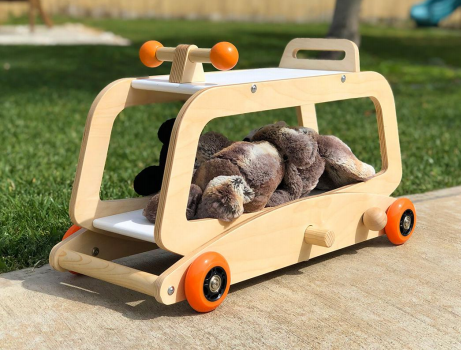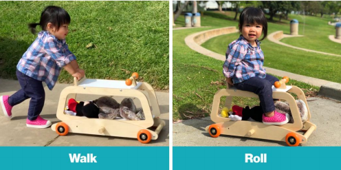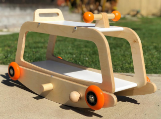 Rock & Roller不再是一种一年后就会被丢弃的玩具,而是与孩子们一起成长,适应他 们的需要。Luma Rock & Roller专为9个月至4 岁的儿童设计,最初是作为一个摇摆玩具, 用它的摇摆动作来娱乐儿童,但也用平衡技 巧和对重心的理解来成长他们。当孩子接近开始走路的年龄时,摇椅的摇椅 底座会翻转180度,玩具就变成了一个助行器, 让他们坐在摇椅上,借助底座上的轮子四处 走动。随着孩子身高的增长,摇摆车从一个 助行器变成了一个手推车,让他们可以通过 后面的把手,把玩具或兄弟姐妹推来推去。